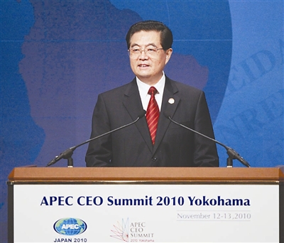 胡锦涛出席亚太经合组织工商领导人峰会并发表重要演讲。 新华社记者 兰红光 摄