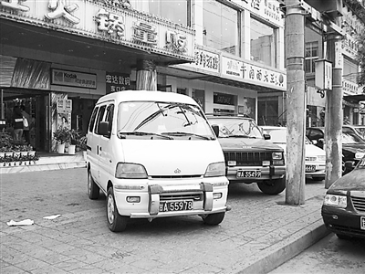 兰州一处盲道上停着一排汽车 张铁梁 摄