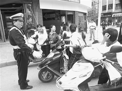 近期,贵州省镇远县城区内无证驾驶摩托车,特别是电动车的中学生越来越多,每到上下学时间,无牌、无驾驶执照的学生即驾驶着自己的电动车蜂拥开上公路(上图),有的还搭乘顺路学生同行(中图),给城区交通安全带来很大隐患。为了加强道路治理工作,交警曾多次到学校或在公路上对学生开展交通安全教育,到学校组织教师、学生家长举行交通安全讲座,但收效甚微(下图)。为了保障学生安全和社会秩序,日前,黔东南州交警支队再次从支队机关、凯里市交警大队和麻江县交警大队抽调20名交警到镇远县,开展为期一周的专项交通违法整治行动,以督促学生、教师及学校对学生提高交通安全意识,依法驾驶机动车辆。