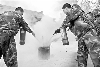 为保障古建消防安全,提高市民的消防意识, 11月3日下午,北京市东城区政府在雍和宫天王殿门前举行东城北区第二十届“119”消防宣传活动启动仪式,以此拉开东城北区“全民消防,生命至上”宣传周活动的序幕。活动中,北新桥地区义务消防队员、东城第一支队北新桥消防中队官兵与辖区企事业单位人员进行了扑救油锅火、破拆救援及着装演示,并向市民发放了“围裙、手册、布袋”等消防宣传材料。