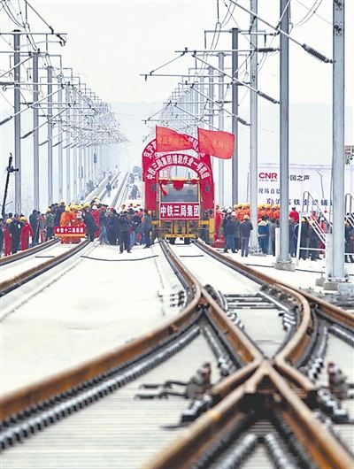 11月15日上午9时8分,京沪高铁全线铺通仪式在京沪高铁蚌埠南站举行。张建平摄