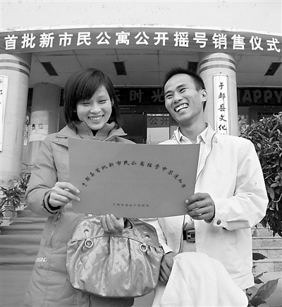 11月16日上午,江西省于都县举行首期新市民公寓申购摇号仪式,任小庆等88名务工人员获申购权,刘志松和任小庆夫妻俩在申购摇号仪式上成功中签,喜圆自己的城里安家梦。