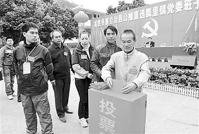 11月16日,广西龙胜各族自治县瓢里镇举行党员大会,公推直选镇党委班子。477名到会党员在听取14名进入复选的候选人的竞职演说后,当场投票选出镇党委书记1名、副书记2名、党委委员6名。此次“公推直选”,全县共有67名党政干部报名自荐,56人通过资格审查。通过个人自荐、组织推荐、群众举荐,最后党员大会投票直选乡镇党委班子的“公推直选”方式在广西尚属首次。 新华社记者 陈瑞华 摄