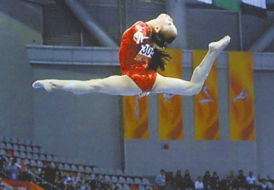 11月17日,在广州亚运会体操女子平衡木决赛中,中国选手眭禄以15.425分夺得金牌。图为眭禄在平衡木决赛中。