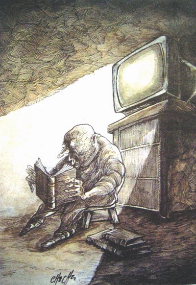 电视节目实在乏味——既缺生活情趣又少文化内涵。热心观众用书为荧屏充“电”,这肯定是个奏效的办法。