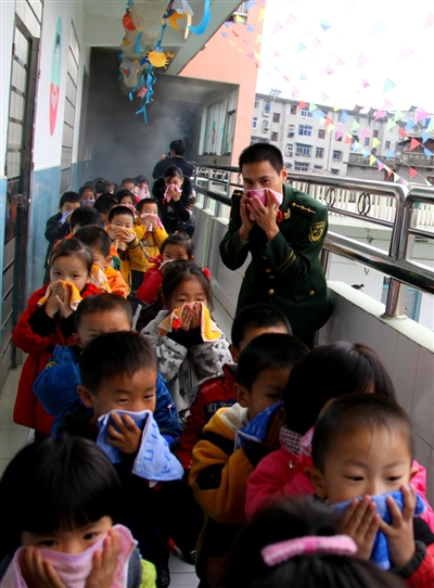 连日来,江西省靖安县在学校、工厂、社区、建筑工地等人员相对集中的地方,开展消防设施、消防通道安全检查,组织学习防火灭火知识和技能,进行防火逃生演练,以提高全民消防安全意识和防火逃生的能力。 新华社发(徐仲庭 摄)