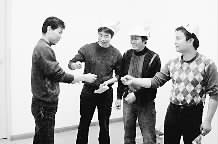 在山钢集团莱钢11月开展的2010年学习型班组大赛上,炼钢厂行车车间行车一班获一等奖。11月17日笔者去祝贺时,该班班长谢统明(左二)说,是他们推行“塔体管理模式”的结果:管理是塔体,培训是塔基,学习、创新、激励、文化、反思评价五项机制是塔骨,行车大动脉安全畅通是塔尖。该模式的展示,使班组从层层筛选的19个单位、34个参赛班组中脱颖而出。王婧 摄