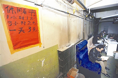 每天到了下班时间,这里便挤满来看书的打工者 。