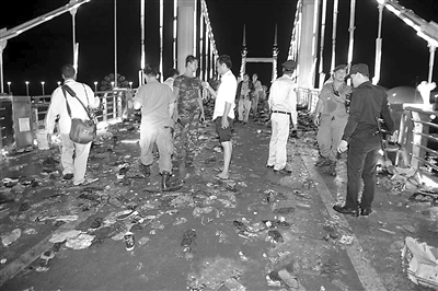 据一位事件发生后到达现场的目击者称,死伤者大多数为来自周边省份的村民及制衣厂工人,“人们的尸体都摞了起来”。事故现场一片狼藉,鞋子扔得到处都是,衣物、眼镜、鞋等私人物品四处散落,几乎铺满了整个桥面。还有些人坐在地上。救援者将遇难者尸体背出现场,为奄奄一息者实施人工呼吸。现场救援者还看到河中有很多被淹死后漂浮的尸体。