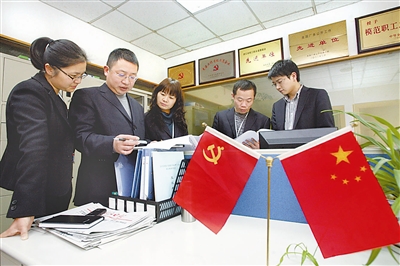 11月23日,在浙江传化集团工会办公室,几位年轻的职工代表正在整理职工意见。本报记者 杨登峰 摄