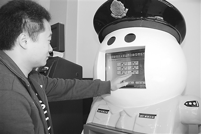 当日,全国首个以民警卡通形象为蓝本,集自助受理和自助填表功能于一体的“办证机器人”在福建泉州市公安局出入境办证大厅正式投入使用。 新华社发(颜财斌 摄)