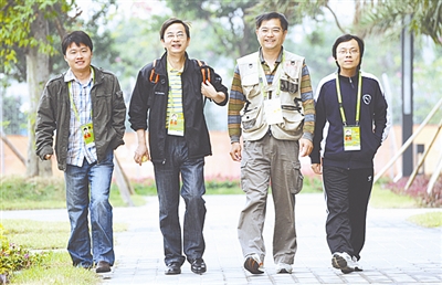本报广州亚运会前方报道组(从左至右)孙喜保、刘颖余、许之丰、李元浩。
