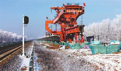 我国东北地区近期遭遇连续强降雪。在哈(尔滨)齐(齐哈尔)铁路客运专线建设中荣获“首段连续架梁示范工地”称号的中国铁建十五局集团哈齐项目部,为提前实现工期节点目标,广大架梁职工战严寒、斗风雪,目前已架设箱梁70孔。赵延风 摄