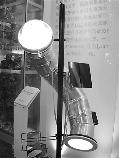 管道式日光照明装置是一种无电照明系统,可以把采集来的室外自然光均匀高效地照射到室内需要光线的地方,采用这种系统的建筑物白天可以利用太阳光进行室内照明。中节能索乐图公司的该装置(以330Ds型号为例),一年可节电3041kwh,减排二氧化碳2.4吨。