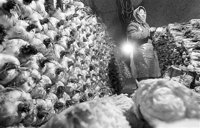 11月30日,哈尔滨市道里区榆树镇民主村农民王强家的菜窖内,几个农民正在给白菜去除腐叶。王强说,今年他家窖里储存2万公斤的大白菜,这几天许多菜贩子来批菜。民主村是当地的窖储菜基地,仅白菜就有50万公斤,另外还有土豆、萝卜、大头菜等,保证满足市场供应。据了解,窖储菜的持续上市,对平抑目前高企的菜价具有重要作用。小刚 摄