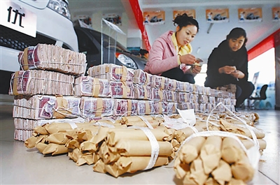 11月29日,青岛长沙路一家车行内,一位顾客前来提车时带了一麻袋五角的纸币和两袋五角的硬币,令车行的人犯了愁。