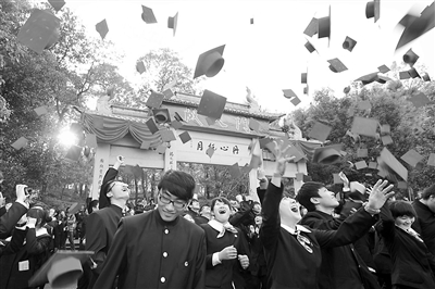 12月4日,浙江杭州市“十八岁成人节”成人宣誓仪式结束后,学生们将红色的“成人帽”抛向空中。