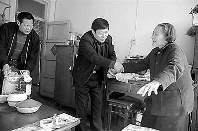 冬日暖阳里,冀中能源集团显德汪矿工会副主席富东辉来到邢台县山区慰问已经74岁的工亡职工家属韩锁芝。11月19日至25日,显德汪矿工会工作人员分别来到井陉、平乡等市(县)走访慰问,为14户工亡家庭送去了价值5000多元的慰问品。