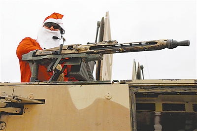 圣诞节临近,世界各地出现了各式各样的“圣诞老人”。图为12月6日,一名执勤中的驻阿富汗德军机枪手扮成圣诞老人。阿健 供图