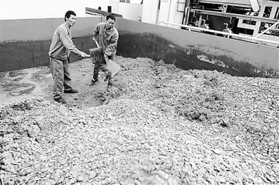 12月6日,工作人员在整理脱水后的蓝藻藻饼,这些藻饼可以制作有机肥。