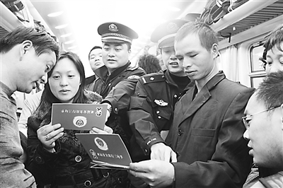 杭州铁路公安处乘警支队为了确保即将召开的亚残会期间的安全,对杭州至广州的K209次进穗列车加强安保措施。通过在该次列车上专门增派亚运安保警力,将列车上经常出现的诈骗或盗窃案汇编成“亚运安全出行三句半”卡片,向旅客们开展安全宣传活动。高再新 摄