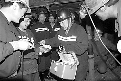 近日,冀中能源邯郸矿业集团郭二庄社区医院的医护人员在井下采煤面给职工免费发放药品。郭二庄社区工会主席李宝贵表示,煤矿工人普遍存在“轻伤不下火线,小病不去医院”的情况,为让职工健康生活、快乐生活,社区将把到井下送医送药作为一项制度坚持下去。本报通讯员孙广军 韩日晨 摄