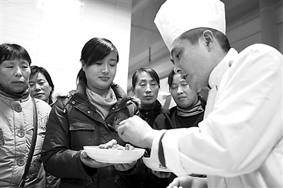 随着元旦、春节的临近,安徽合肥专为家庭烹制家宴的“宴嫂”供不应求。安徽省妇联就业培训中心组织举办“宴嫂”烹调技艺培训,既满足了市民两节期间对合格“宴嫂”的需求,又解决了一部分妇女的再就业。新华社发 (杨晓原 摄)