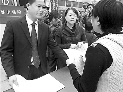 12月14日,重庆能源集团永川洗选厂职工在询问养老保险事宜。当日,永荣矿业公司开展“送岗位、送文化、送保障、送技能”服务活动,工会、共青团、妇联等部门联手,组织社保、技能培训中心等部门工作人员开展劳动就业咨询、技能培训援助等活动。赵森 钟波 摄