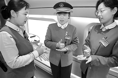济南客运段的“泉韵”服务品牌于2009年荣获山东省服务名牌。为了巩固丰富“泉韵”,该段在全段范围内开展了业务技能比赛,激发党员群众保安全、上标准的工作热情,更好地在创先争优中争当服务典范。张明华 摄