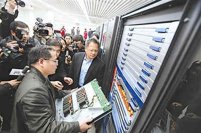 12月22日,北京,我国自行研制的超级计算机“天河一号A”向公众揭开其神秘面纱。这台计算机凭借4700万亿次/秒的峰值速度成为全球最快超级计算机。王贵彬 摄