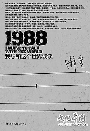 读韩寒的《1988:我想和这个世界谈谈》,觉得这本小说有点跟风的嫌疑。但读过之后,没觉得白读,使我对韩寒有了重新的认识。韩寒的本质影响力也在于“真”,而不是思想。韩寒身上所具备的,正是众人身上所缺少的。把《1988》与韩寒捆绑在一起进行阅读,这也容易使我摆脱过度激越的思维,以更为理性的文化视角看待社会现象,从而产生特定的社会积极意义。