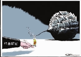 时事漫画家们对这两起事件没有沉默,相反表现得格外亢奋。如果说,朝核问题的“故事”多少有点老套,难以在构思上寻求新的突破的话,那么“维基解密”这一题材,显然让他们尽享到一种“刺激”快感!在当今读图时代,特别是在数码“智能化”绘画功用下,对传统的独幅漫画创作来说,再也不能仅凭借立意新颖来打动人。也应该以更完美的画质来烘托主题、诠释新闻。这里介绍的一幅作品,是反映“维基解密”热点。画家采取灰黑两种冷色调,营造出一个似是独立于宇宙之外的空间背景。画面看上去灰蒙蒙、黑乎乎的,你说这究竟是在哪里?哪个界面?哪个域名?这或许能让观赏者对作为硬件的计算机固有色及其深邃无底的互联网世界产生更宽泛的联想。如果是欣赏原寸大图漫画,你会感受到“于无声处听惊雷”般的强大气场。画家还巧妙地将“解密文件”变异为一个硕大的炸弹,而更可怖的是一只黑手已将药引子点燃……轰!这时候应该假设:韩朝炮击,炸弹仅落定于延坪岛的话,那么阿桑奇的一个鼠标操作,威力恐怕不亚于一颗原子弹。因为,“维基解密”数据无边界传播、放射,助推事件背后的“剧情”轮番上演:希拉里致歉12国领导人、“解密事件”引爆信息技术革命争论、4000黑客攻瘫多家信用卡网站……