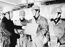 12月21日,皖北煤电恒源煤矿新源电厂汽机车间青工祁志培(右二)高兴地拿到企业发给他的2000元合理化建议奖金和证书。原来,他所在车间的汽轮机抽汽管道使用的水压逆止门出了问题,汽轮机一紧急停机,就抽汽倒灌至汽轮机内部,引起汽轮机超速。在众人没招时,他提出改造水压逆止门的建议,实施后解决了水压逆止门关闭时间长、不严密的安全隐患。吴小平 摄