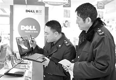 12月21日,在重庆市江北区泰兴电脑交易城,工商执法人员检查笔记本电脑中的软件是否是盗版。当日,随着对知识产权保护力度的进一步深入,重庆市工商局对全市所有的电脑交易市场内的笔记本和台式电脑中所使用的软件进行了拉网检查,凡是使用盗版软件的经营者将根据相关法律进行10万元以下的处罚。据悉,此次专项整治行动为期一周时间。
