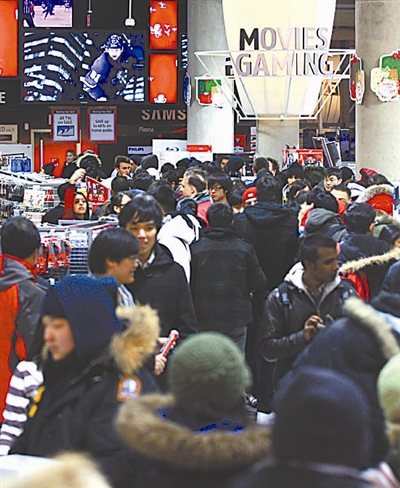 12月26日,顾客在加拿大多伦多市的一家商店里购物。在加拿大,圣诞节后的第一天被称为“节礼日”,众多商家都会在这一天推出折扣优惠、限量销售等促销活动来吸引顾客。很多顾客提前排队等候商店开门,以求买到物美价廉的商品。
