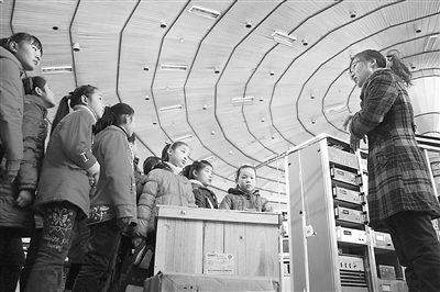 日前,来自安徽含山县的留守儿童正在参观中科大国家同步辐射实验室。当天,含山县团委组织该县30余名由中科大学生结对帮助的留守儿童“回访”中科大,和结对帮助他们的大学生相聚,在这些大学生志愿者的带领下参观中科大校园和部分国家重点实验室,让他们零距离感受科技魅力,体验大学生活。程千俊 摄