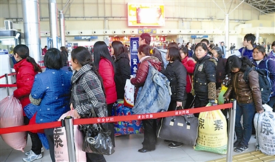 12月26日,上海地铁一号线莘庄站,20多名在闵行区当保姆的妇女背着大包小包,准备乘地铁到南站坐火车回家。据了解,临近年底,不少家政服务公司难觅保姆,沪上又将面临“保姆荒”,而留守保姆的薪水则逐步看涨。 杨毅 摄