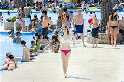 12月27日,人们在阿根廷首都布宜诺斯艾利斯一处公共游泳池戏水纳凉。