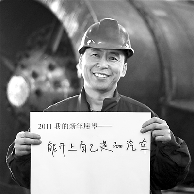 新年愿望:在“一汽”工作30年了,看到从厂区开出一辆辆小汽车,感觉作为一名一汽人很自豪。新年的最大愿望,就是能在2011年开上自己造的小汽车。孙晶磊 摄