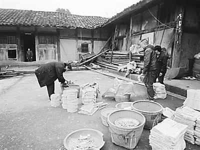 据审查,家住叙永县大石乡双全村村民刘某,从他人手中非法购得生产“土火炮”的原材料后,在家里开设了土火炮生产“作坊”。由于人手不够,刘某于2010年12月17日又雇请了古蔺县桂花乡,两个姊妹帮忙,5天时间共生产土制火炮成品 28个,半成品160个。图为执法人员从其家中查获出的生产用烟火药15公斤及硫磺、银粉、火炮纸等物质和工具。目前,涉嫌非法制造爆炸物的刘某已被警方刑事拘留。岳述君 廖永华摄