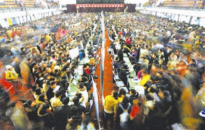 1月3日,国有企业高校毕业生专场招聘会现场人潮涌动。