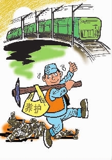 经过仔细研究,袁建辉发现是螺纹道钉下部木塞失效所致。于是,他带领工友们采用掏出木塞,对螺纹道钉进行硫黄锚固,再装上弹条扣件的方法,进行枕木改造,仅此一项就节约水泥枕200多根,节约材料费4万多元,并且节省了大量人力。目前此方法已在全段此类线路上得到了全面应用。