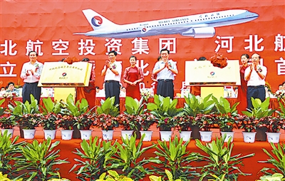 ●2010年6月组建河北航空集团、河北航空公司。此后,投资超百亿元的河北航空城基地开工建设,石家庄机场改扩建工程奠基,参股厦航公司,签订战略合作协议,一次湿租3架波音737客机,使飞机总架数激增50%,运力增长1.5倍,河北临空经济区建设拉开序幕。河北航空成立6个月来,航线达到11条,实现了干支航线客源的互补,日销售收入突破150万元,近期,还将开通广州、深圳等航线。到2015年,河北航空销售收入将实现100亿元以上,进入国内航空企业前十强。