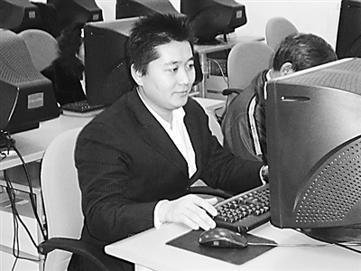 活动房内,整齐摆放着35台电脑,每台都有人在上网浏览。一位30岁左右的外地小伙坐在前排,记者上前招呼,经攀谈后得知,他名叫武传阳,是山东人,现在附近一家名叫“安稳酒家”的餐厅打工。
