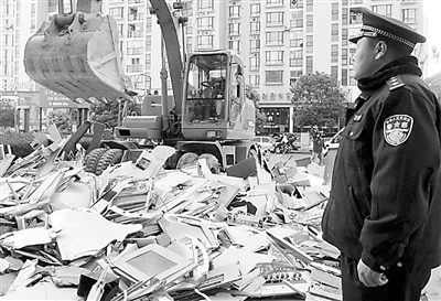 1月6日,南京市公安局鼓楼区分局在河西新城市广场集中销毁赌博游戏机,现场销毁收缴的带有赌博功能的电子游戏机160余台。
