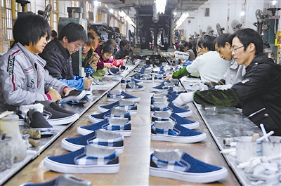 1月11日,福建省莆田市一家企业的员工在流水线上工作。