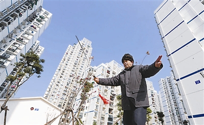 1月11日,84岁的老棚户区居民高楚良在新入住的临江港湾小区里锻炼。