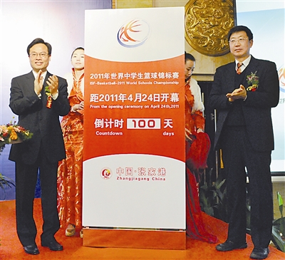 本报讯 2011年世界中学生篮球锦标赛将于4月24日至30日在江苏省张家港市举行。1月9日,世界中学生体育联合会、中国篮球协会、中国中学生体育协会和江苏省教育厅联合在张家港举行赛事倒计时100天启动仪式。