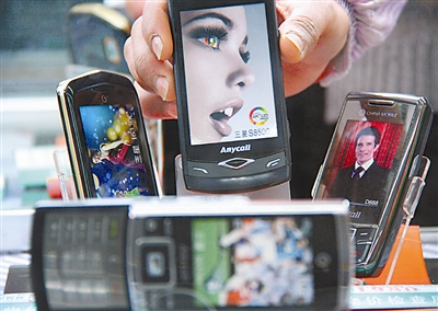 1月13日,在山东临沂市郯城县一家手机店,工作人员在为顾客挑选手机。工业和信息化部、国家工商行政管理总局1月12日联合发布《关于进一步整治手机“吸费”问题的通知》,要求各地通信管理局及三大基础电信运营商加强对相关增值电信业务的监督管理。新华社发(张春雷 摄)