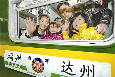 当日,福州火车站开出春运首趟农民工专列——福州至达州L390临时列车,1936名在闽务工人员和他们的家属搭乘此列火车返乡过年。新华社记者 张国俊 摄